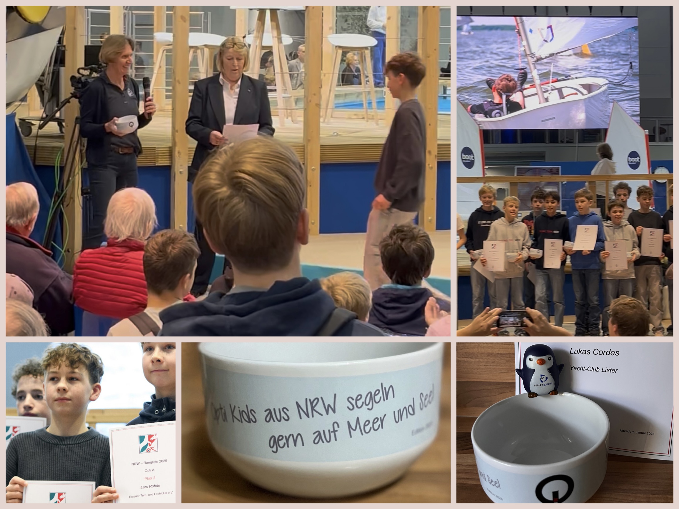 Auf der Messe Boot in Düsseldorf wurden die jeweils zehn besten A- und B-Segler der Saison 2025 geehrt. Für jeden gab es eine Urkunde und die traditionelle Müslischale. Die ist praktisch und schön zum Sammeln… jedes Jahr mit einem